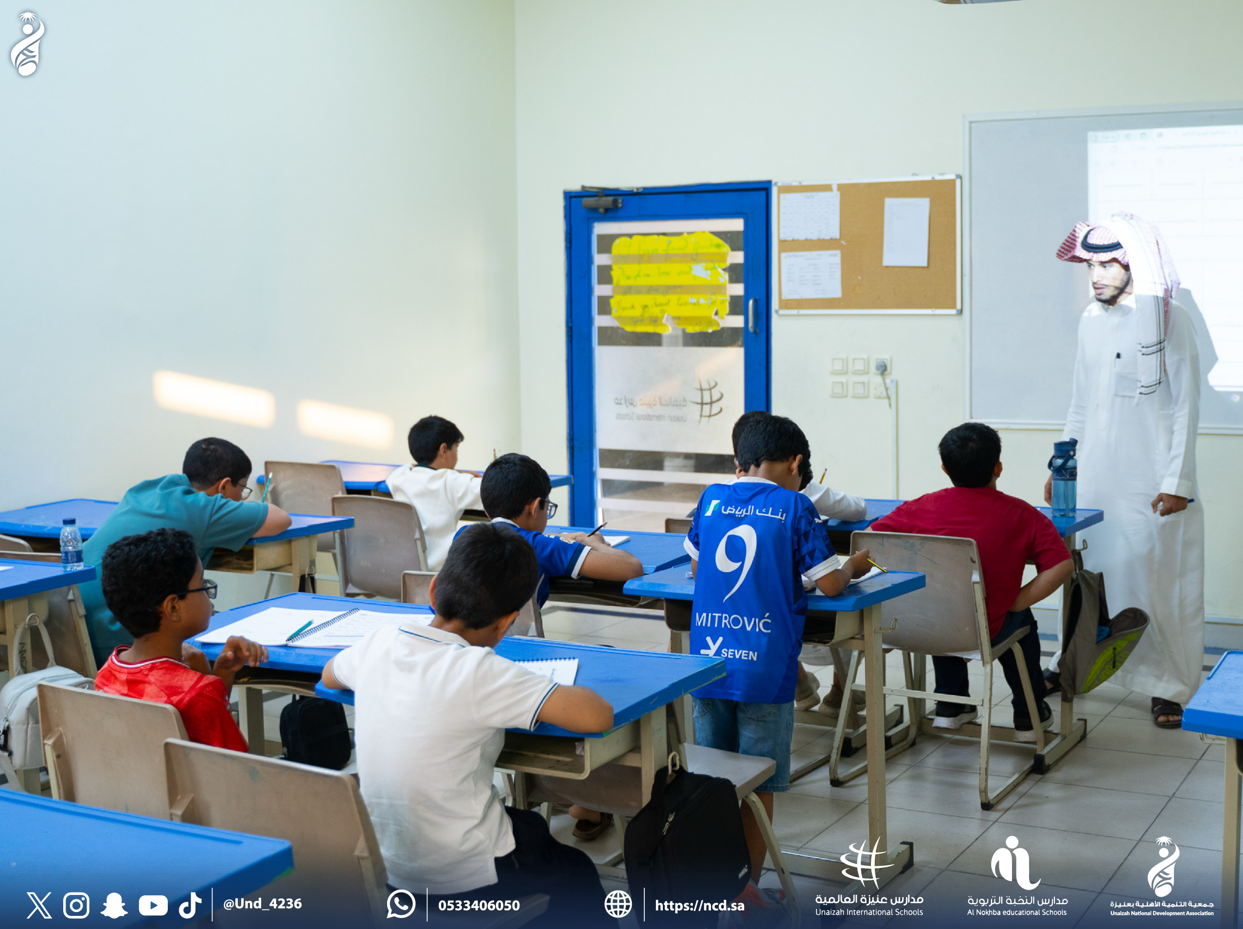 تعلم طلابنا مهارات القراءة والكتابة والإملاء بمتعةٍ وتفاعل، ووازنوا بين الفكر والحركة بأنشطةٍ رياضيةٍ محفّزة. 🧠⚽️ لغةٌ تُكتبُ بإتقان، وعقلٌ يتّقد نشاطًا! 🌿