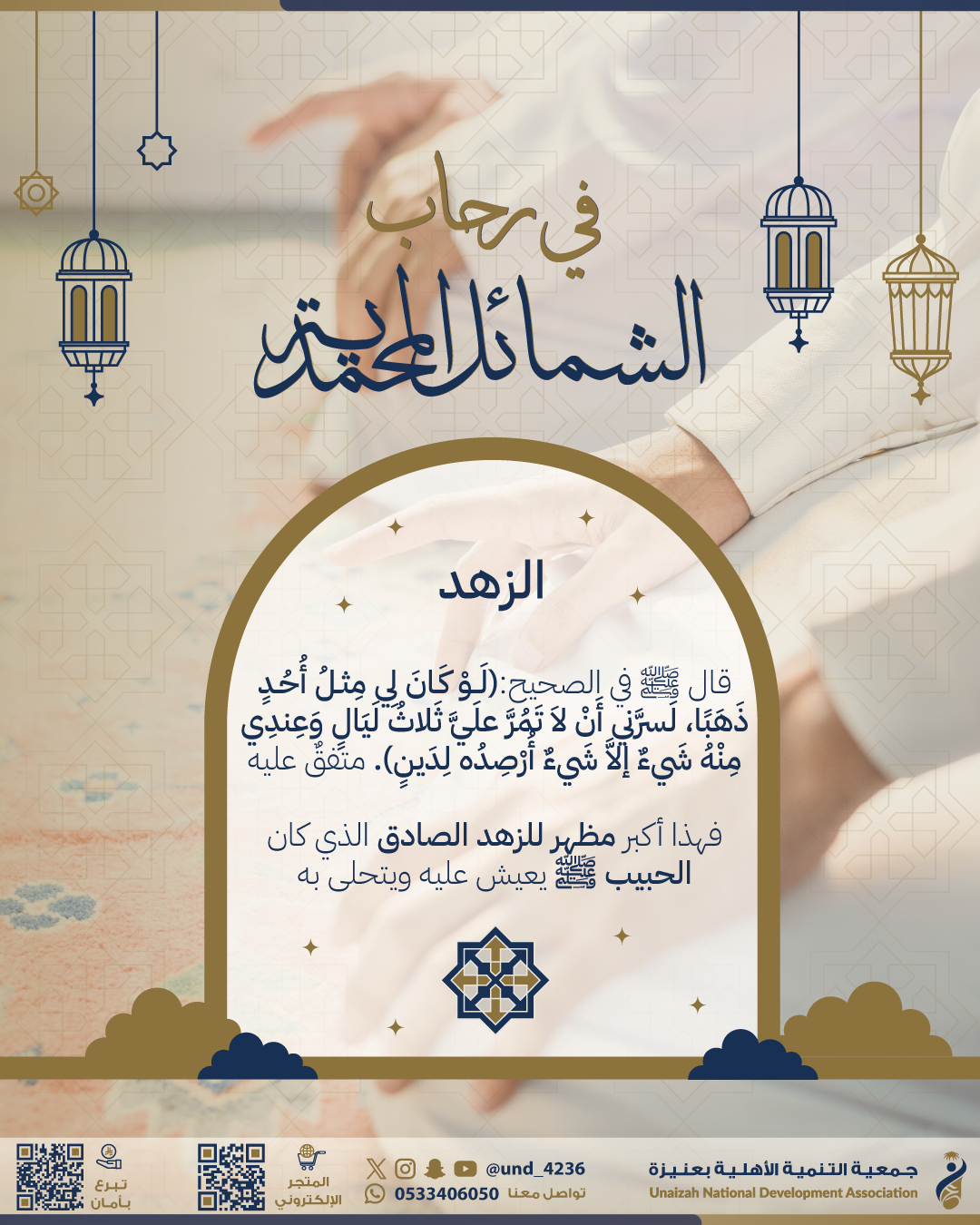 الزهد : يعيش حياة بسيطة رغم قدرته على الرغد.