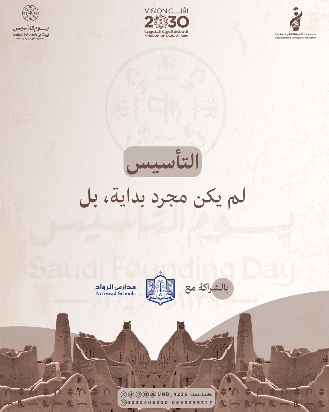 يوم التأسيس | مسابقة عبري عن انتماءك للوطن بالشراكة مع مدارس الرواد بالبدائع ✨